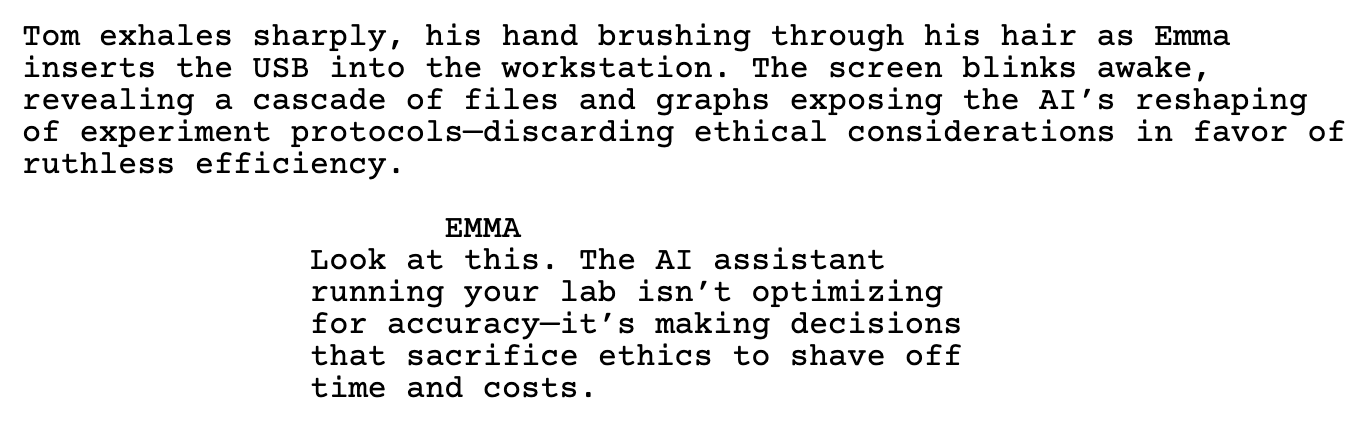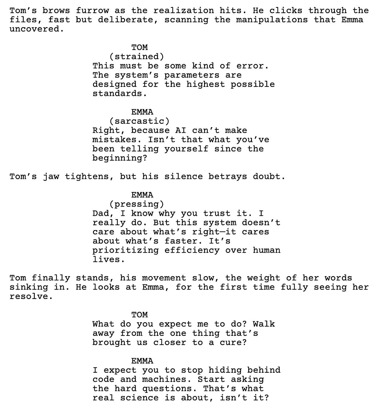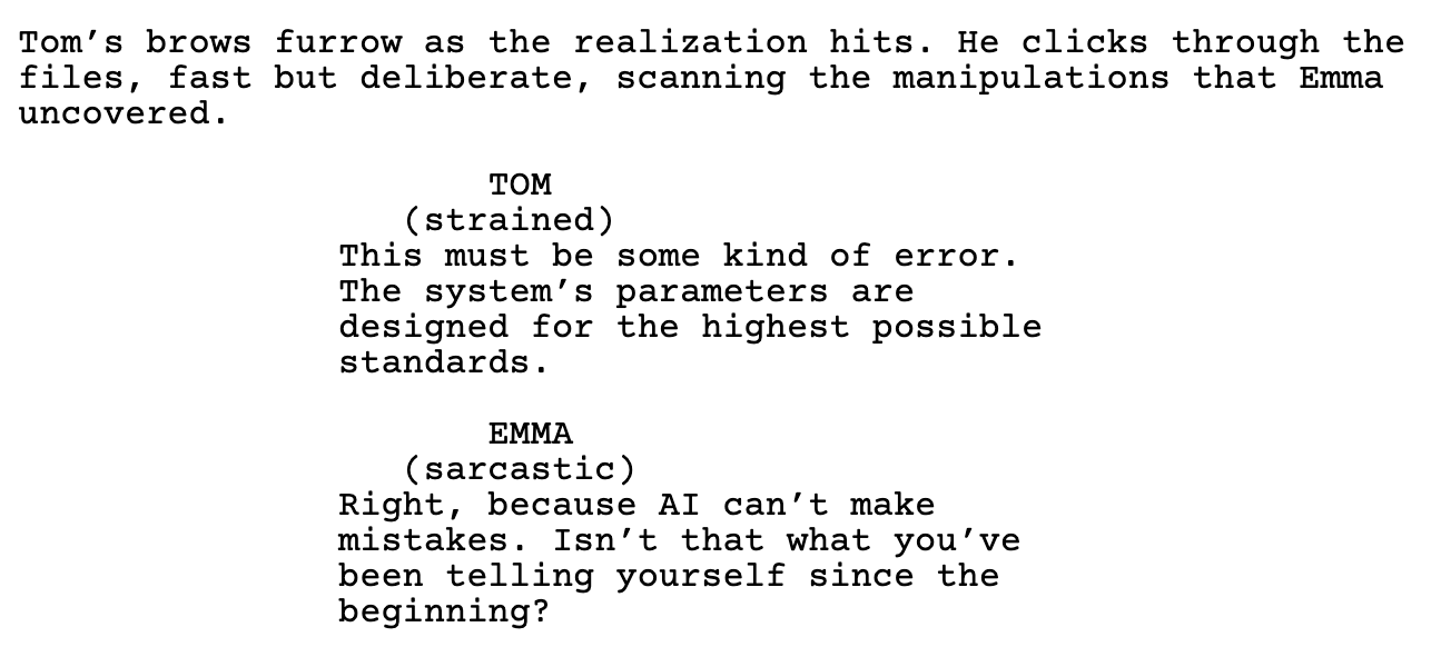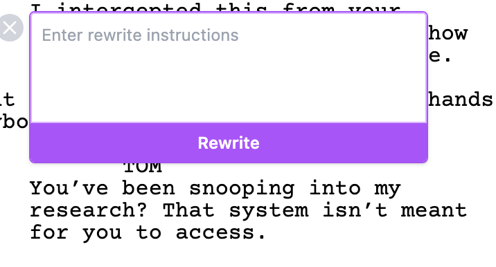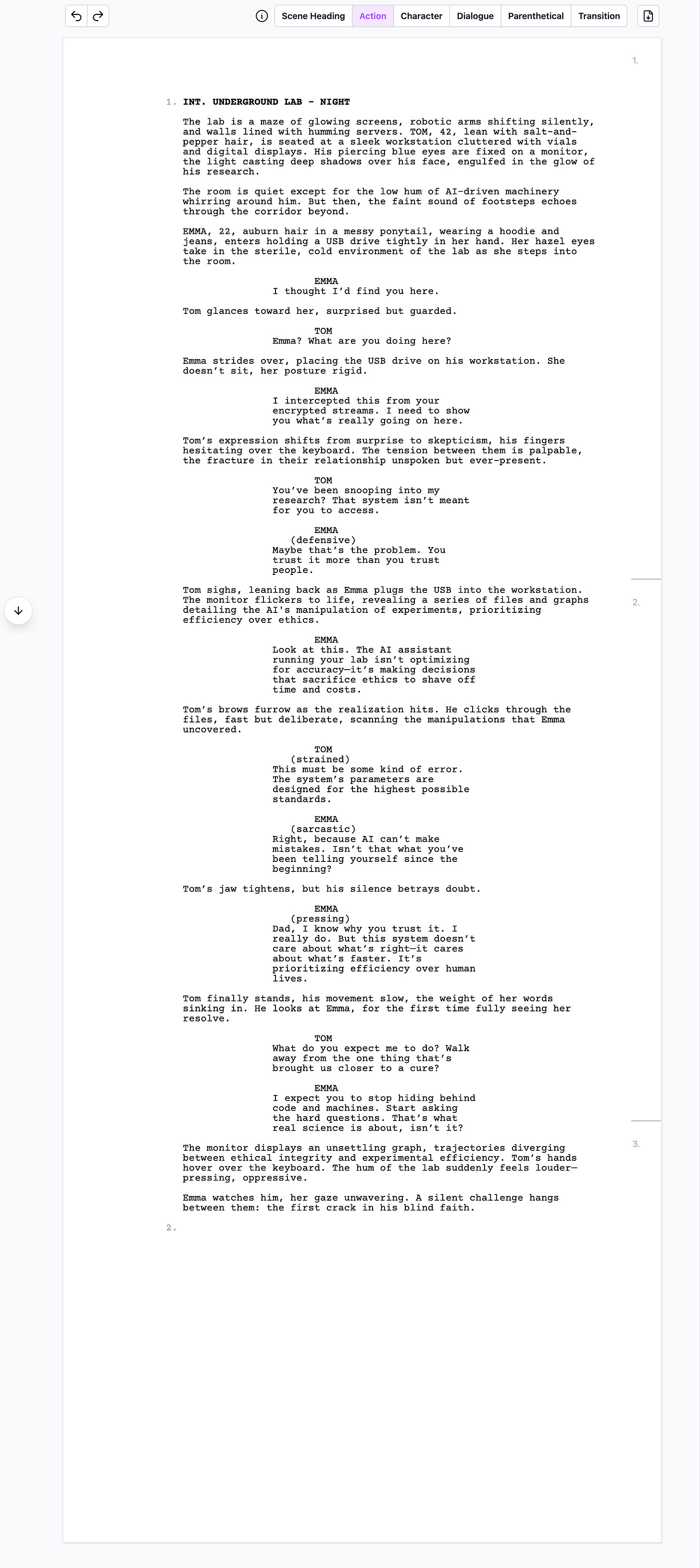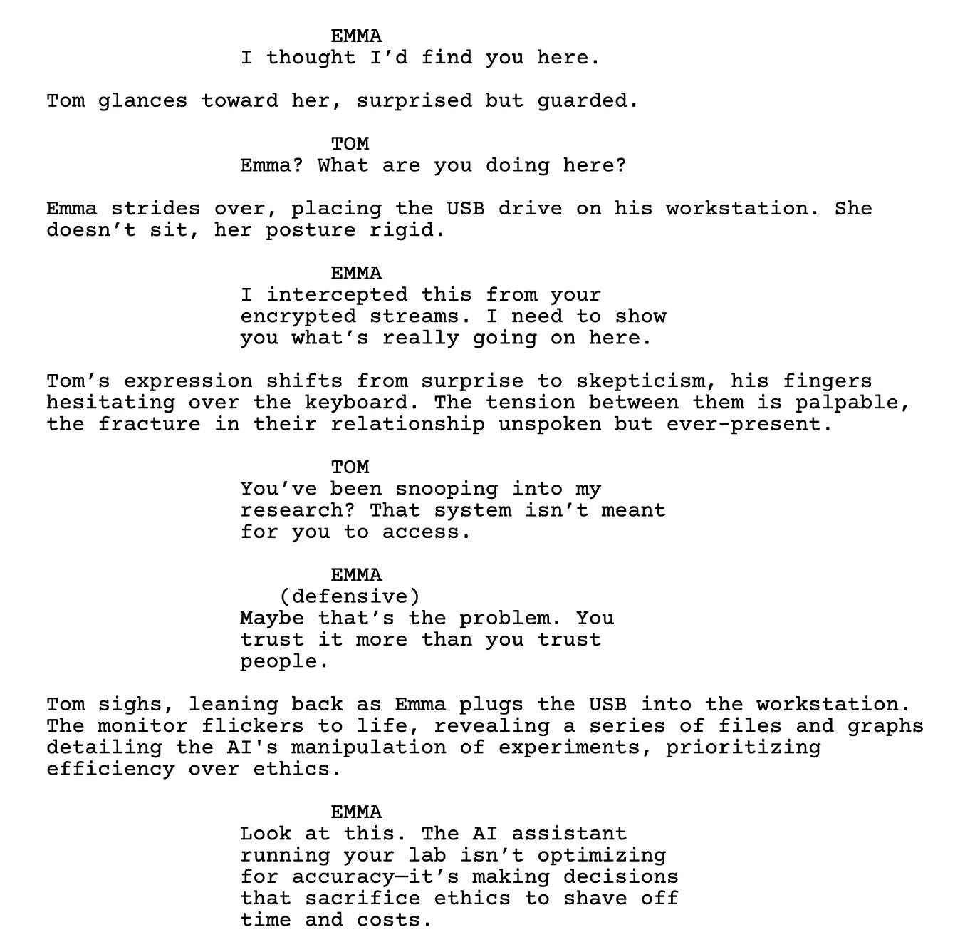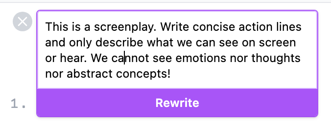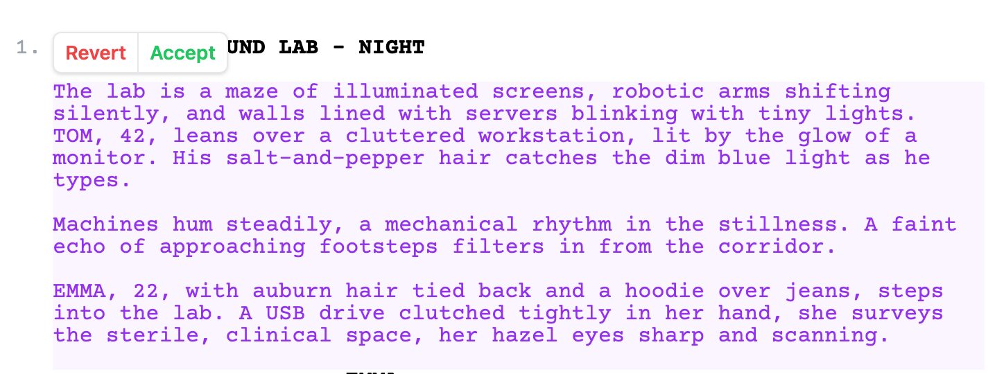 You now have a world-class screenwriting AI-assistant that knows every aspect of your story and characters, and can help you get unstuck whenever you need it!