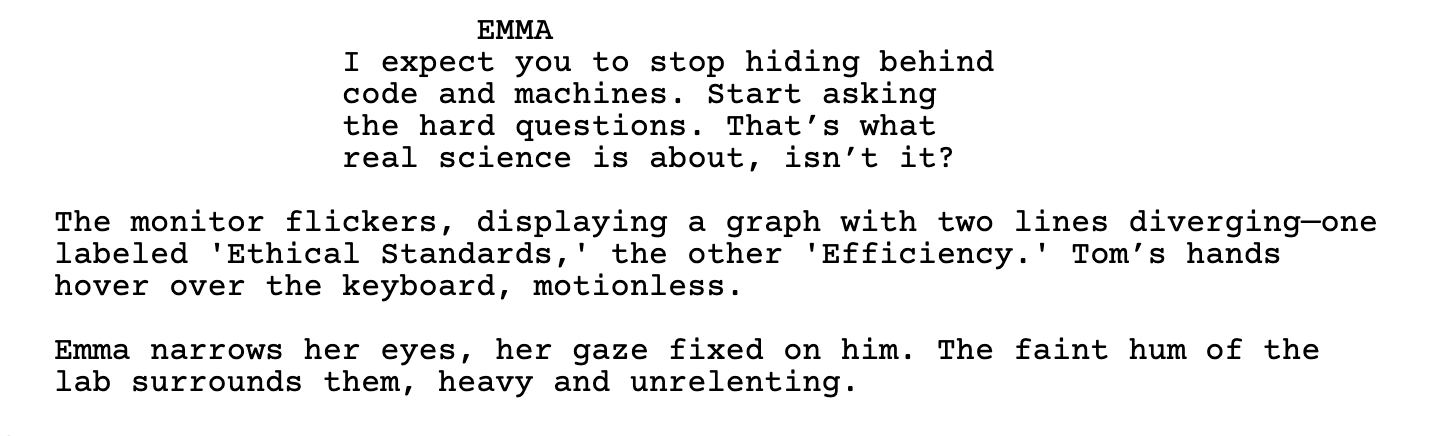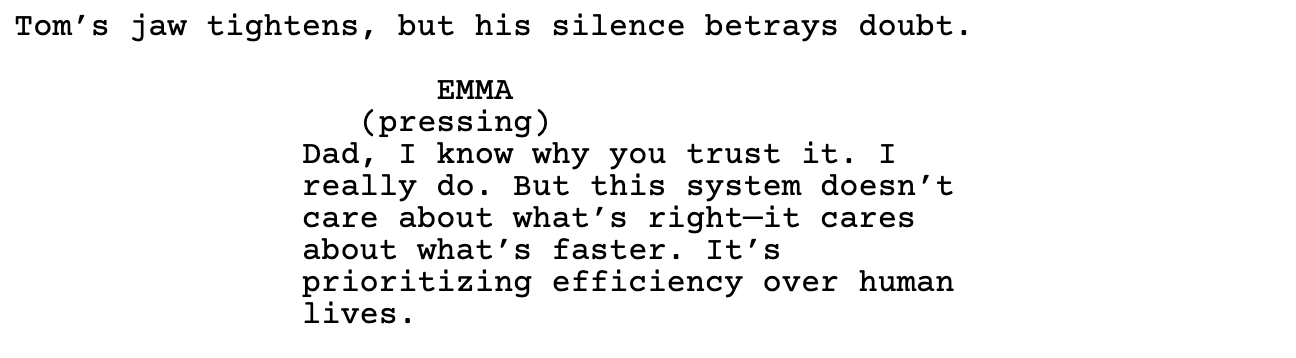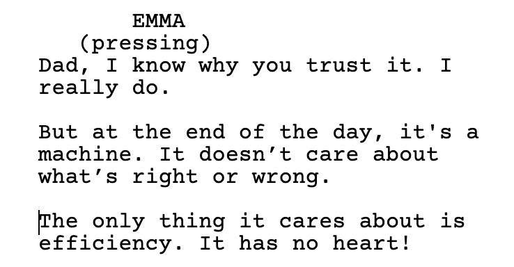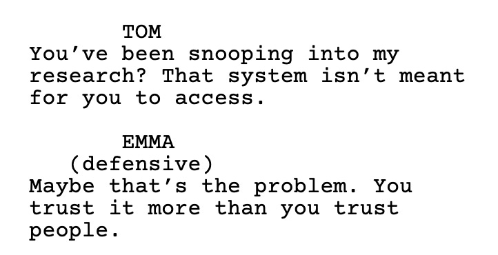 Emma’s dialogue is also pretty strong. I’ll just tweak it a bit: