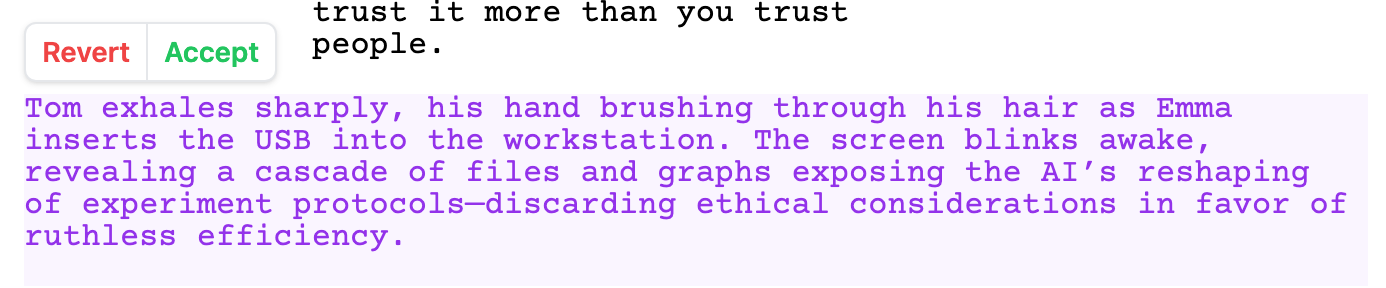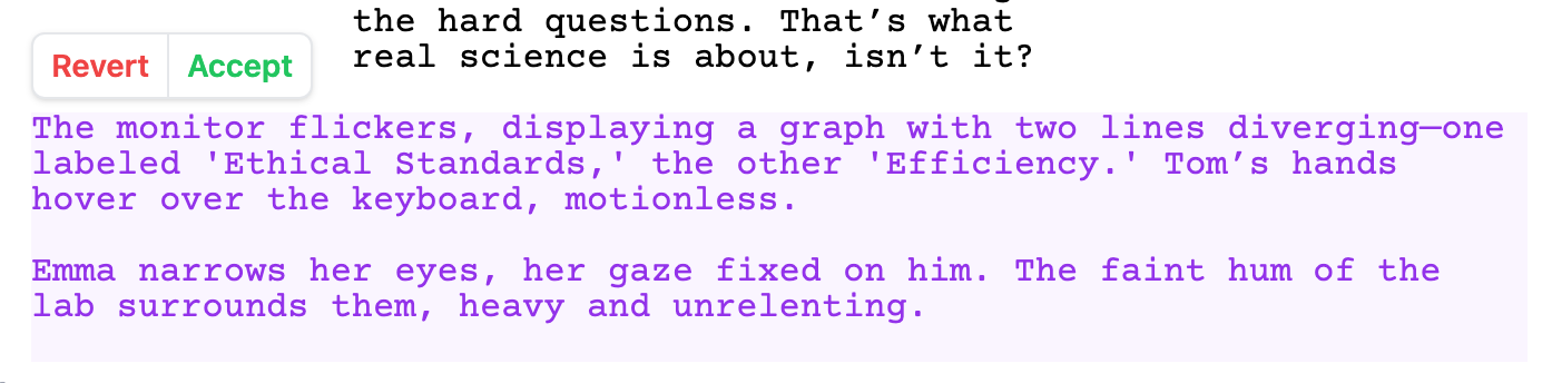 I’ve gotta say, as someone with a software engineering background I LOVE the touch of presenting the draft with a Revert and Accept buttons at the top!