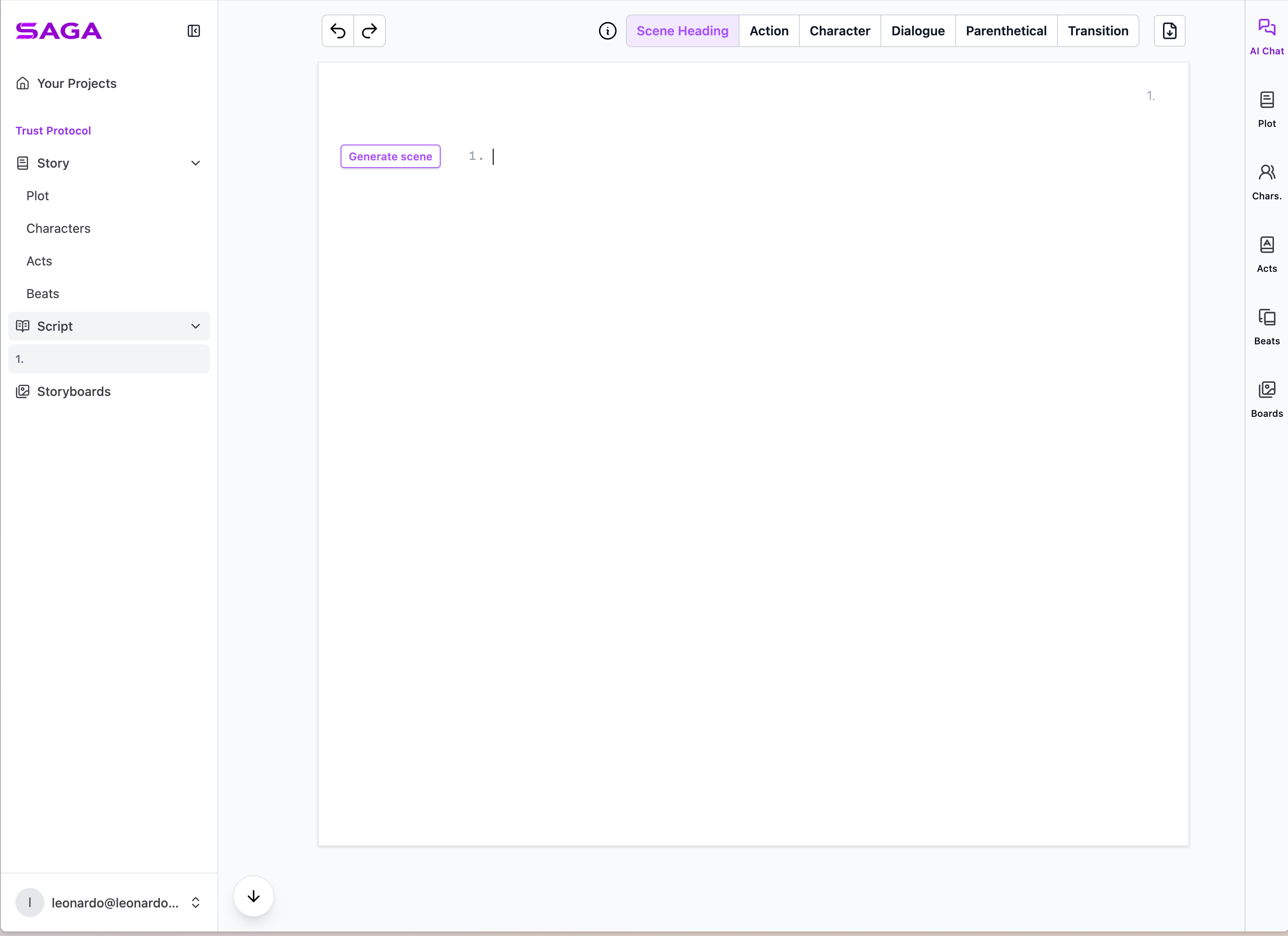 This is great if you uploaded your own script to Saga, or wrote it directly in the Script section without bothering to fill out the beat sheet in the Story section.
